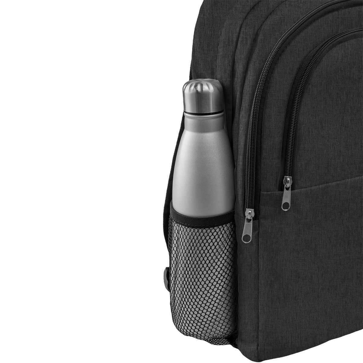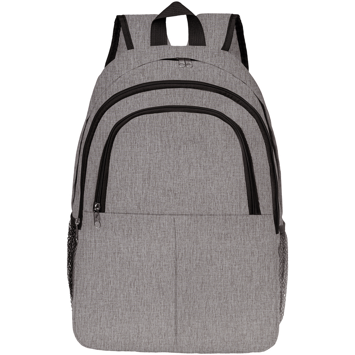 Designed for professionals and students, this Heather Lite laptop backpack combines functionality with sleek minimalism. The water-resistant PU-coated fabric protects your belongings while maintaining a lightweight profile. Its intelligently designed interior features a secure double-zippered compartment for 15" laptops, complemented by multiple organizational pockets - including a secondary pocket for documents and a front pocket for quick-access essentials. Practical side mesh pockets accommodate water bottles or umbrellas, while the braided belt top handle offers both durability and sophisticated styling. Measuring 16"×11"×3.5", this backpack is ideal for daily commutes, business travel, or campus life. Custom branding options make it perfect for corporate gifts or promotional items. The clean solid-color design ensures professional appropriateness for any setting.
